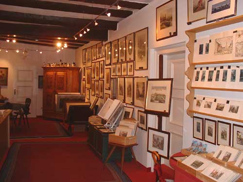Geniessen Sie eine große Auswahl an Radierungen und Ölgemälden in ruhiger Atmosphäre.